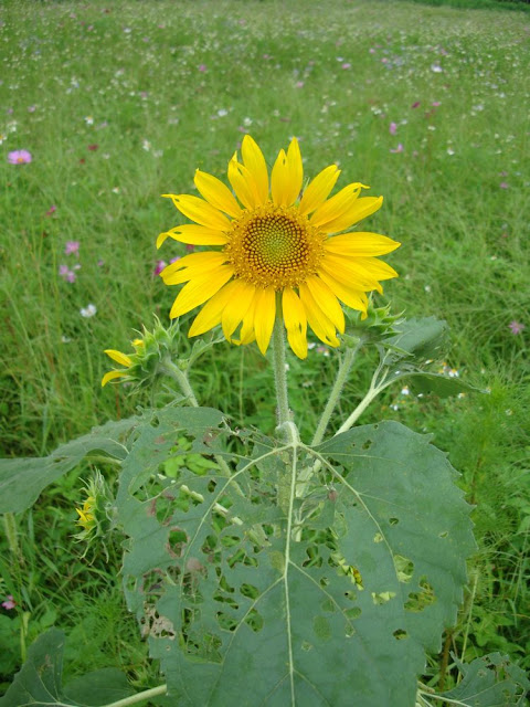 頭頂飄來好大一片烏雲,看著太陽花佇立在田邊,耳邊響著笑望歌,以及我超愛的一首歌-生命有一種絕對的一句歌詞:直到約定融化成笑顏,直到我看見生命的絕對。(附帶一提:我最愛的版本是DNA台北場 安可清唱版)