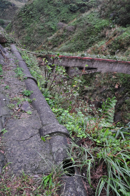 接著從第一座水圳橋迷路到最後一座遺留的水圳橋,那天風很大,又下雨,想挑戰大石公,但怕天雨路滑,這一滑就是斷崖,所以就乖乖的放棄。為了看水圳橋走在斷崖上還要怕被風吹落,底下的水流湍急,只好壓低身體慢慢走。
