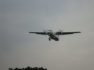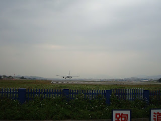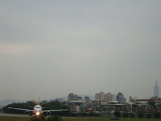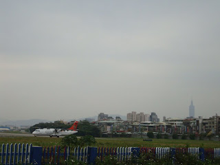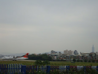 吃完午餐後,還不想這麼早上去北投,所以就先到松山機場看飛機降落。這地方看飛機,飛機龐大的機身會從你的頭頂飛過,降落在你眼前的跑道上,台灣看飛機起降的地方很多,有一個我很想去的地方卻一直沒去,就是桃園大園,以後一定要找天去大園看飛機。