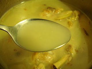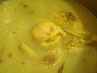 通常我會先加薑絲或薑片到滾水中讓它滾久一點,讓薑味跑出來後再把雞腿肉放進,煮出來的湯會呈現乳白色,而非透明湯色,我個人認為這樣比較好喝...