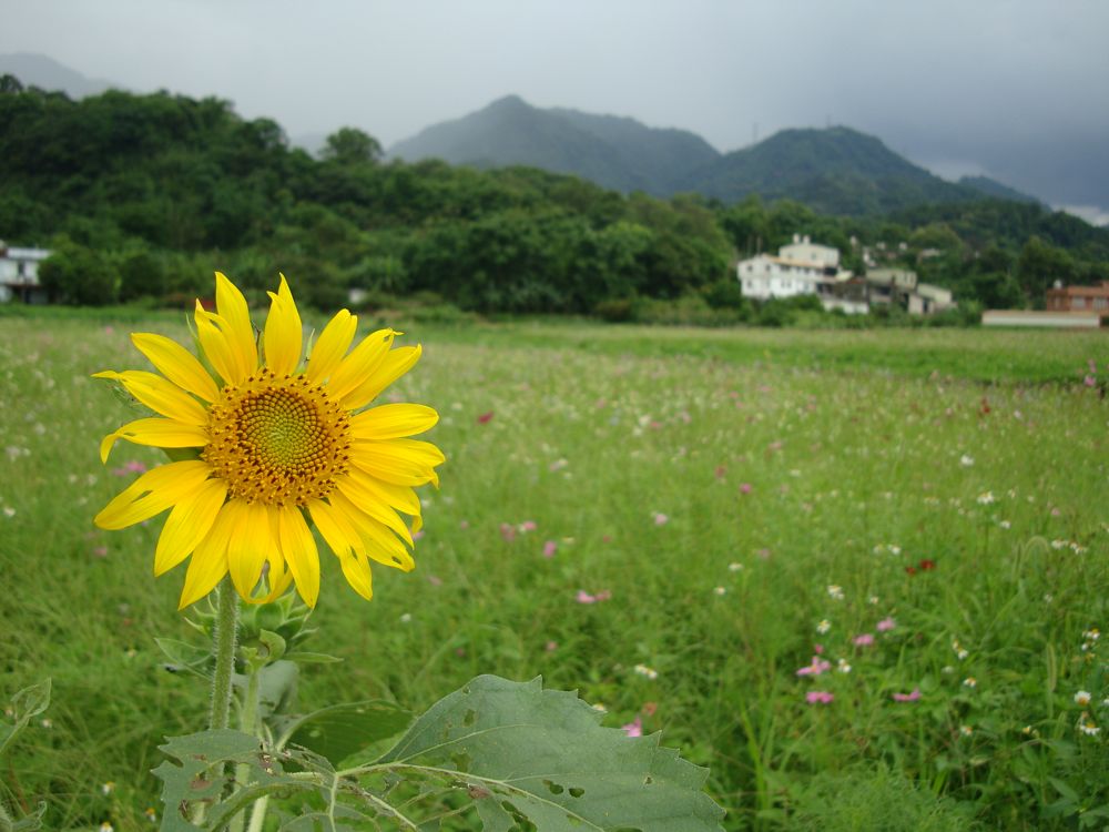 頭頂飄來好大一片烏雲,看著太陽花佇立在田邊,耳邊響著笑望歌,以及我超愛的一首歌-生命有一種絕對的一句歌詞:直到約定融化成笑顏,直到我看見生命的絕對。(附帶一提:我最愛的版本是DNA台北場 安可清唱版)