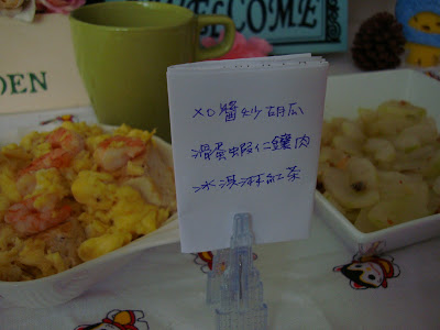 回家逗弄那可愛的小狗後,洗完小手痛苦的面對那需努力奮戰的午餐,耗時一個半小時終於把這大魔王吃了一大半,哀求著老爸幫忙吃完碗裡的飯菜。