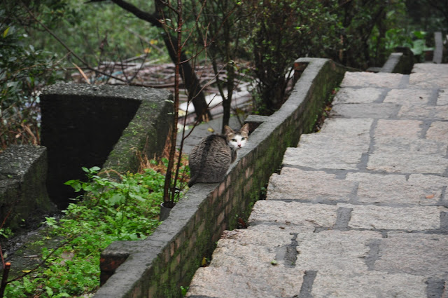 走回民宿放完行李後,開始來趟祕徑之旅,果然一路上都沒有人,只有花貓和黑狗。一踏上古道,就看到一隻花貓在路旁歇息,花貓看到我走了幾步又回頭看我,看我是否有跟上牠,然後又再走幾步再看我,我都懷疑我是不是貓的報恩裡的小春了,最後小花貓要帶我進入村落裡的人家,我就沒再跟著牠,但牠卻眼巴巴望著我,害我只好撇過頭去不看牠。