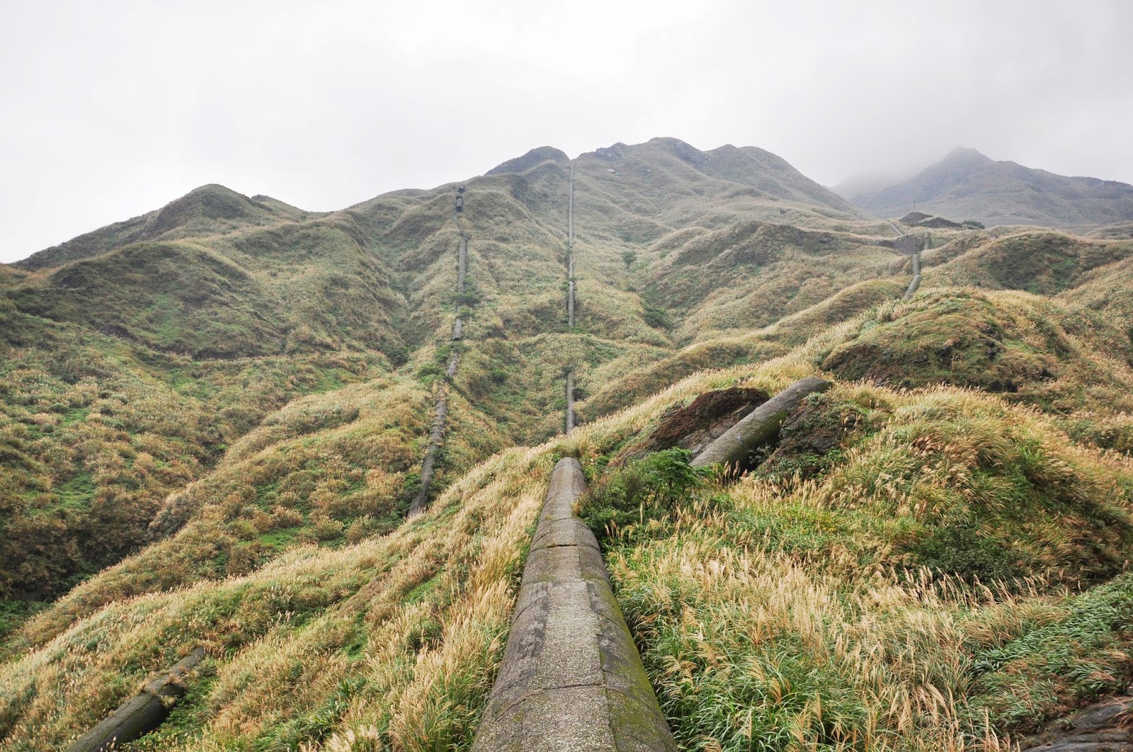 這三條廢煙管當初是因為煉礦時大量的廢煙需要導向後山沒人居住的地方,因此才會在山上建造三條巨龍,把廢煙導入海邊,現在管內還是有大量有毒重金屬,所以我不敢進廢煙管,只趕在它頭頂造次。