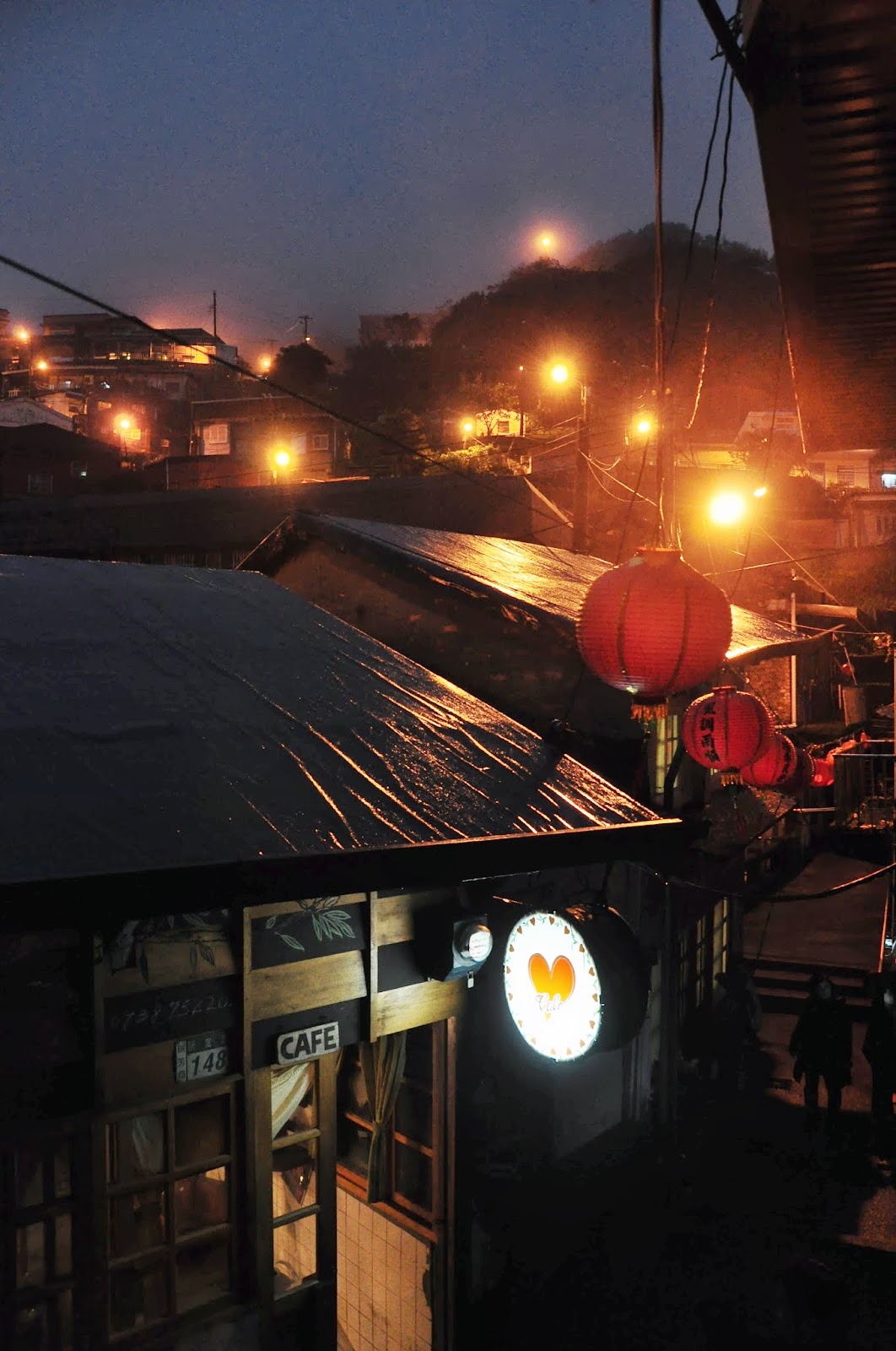晚上的金瓜石只剩路燈點綴,這時候的金瓜石和早晨一樣迷人,隨意的踏著階梯迷路,不小心來到真心咖啡館,旁邊似乎也有間民宿,應該就是咖啡館主人經營的那間民宿。跑進對面跟柑仔店阿嬤聊天,記得以前柑仔店阿嬤生意沒很好,久久才有遊客進來參觀買雜貨,以前也跟阿嬤聊過天,那時她很清閒,而我也沒排行程很閒的逛金瓜石,看到有二手書,於是就跟阿嬤聊起天。經過這些年,這裡變得很熱門,很多攝影迷特地跑來這照相,可是拍照沒事先詢問而又兩手空空的離開,沒光顧買些東西,阿嬤開始不高興,如果想拍照,請務必先詢問一下阿嬤再拍,阿嬤其實還蠻歡迎的。